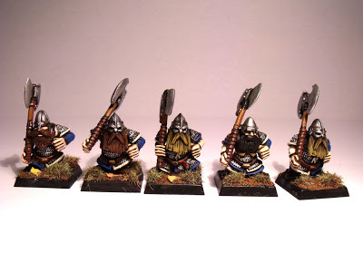 My 'epic' command squad. All metal models, and all armed with Storm Shields. Used them twice I think. They took a long time to die. I figured that if they are to follow the commander into the harshest arenas of war, they could use some protection. That and since they are veterans, they get their pick of the armour. They are a very expensive unit (260 or 270 I think, been awhile), but they were great fun to paint, and I really enjoyed making their individual heraldry. Banner of course is from the Grey Knights.